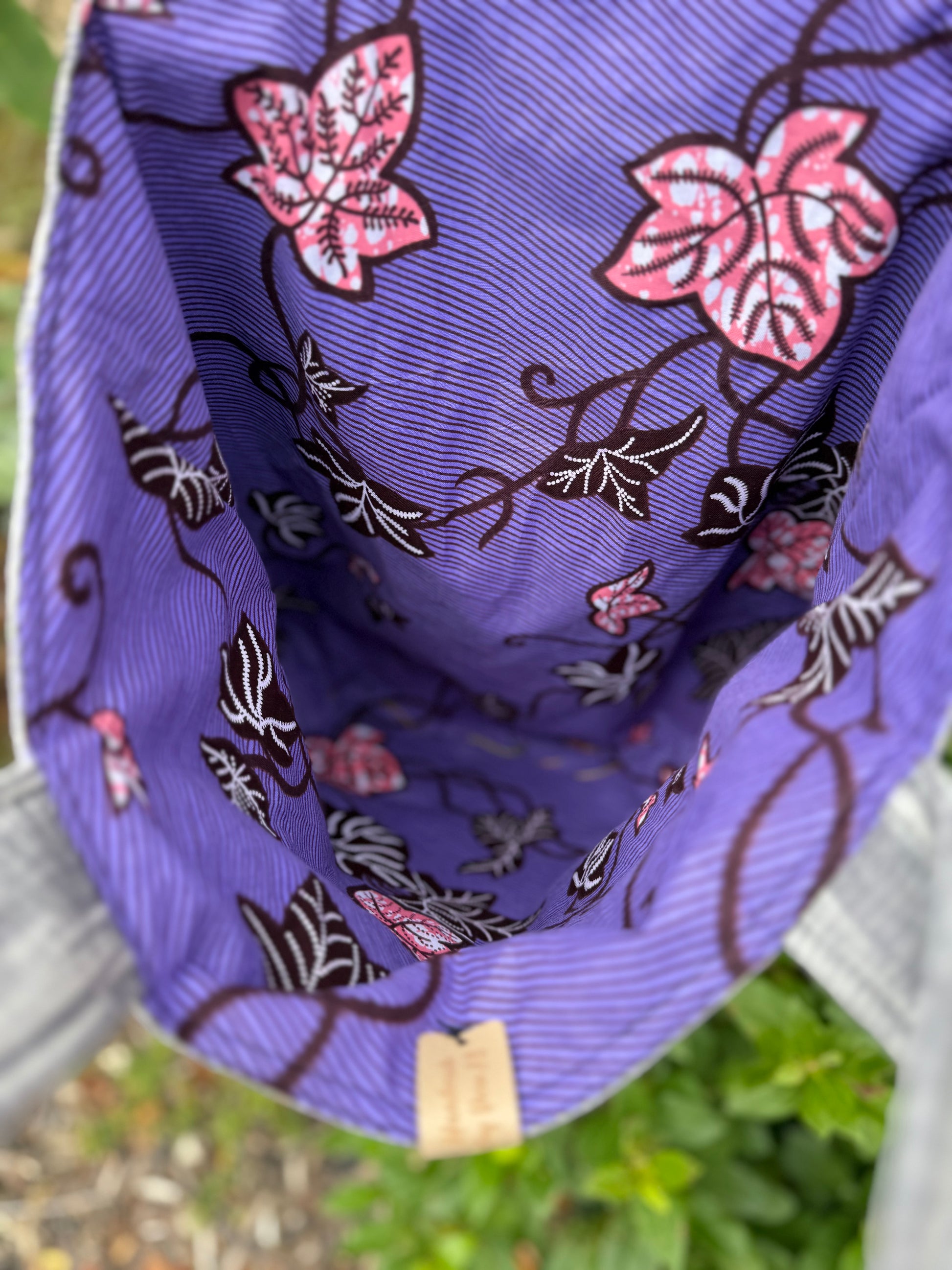 it’s up to you - Vera tote bag is a fully lined non reversible bag with front patch pockets and will be made with a combination of Denim and African cotton print.